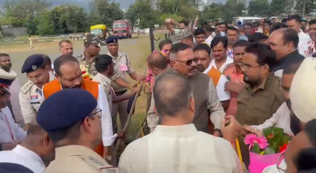 Dispute in BJP leaders and policemen: बाबा कार्तिक उरांव चौराहे का विकास एवं प्रतिमा स्थापना कार्य का भूमिपूजन करने अंबिकापुर पहुंचे सीएम विष्णु देव साय,....