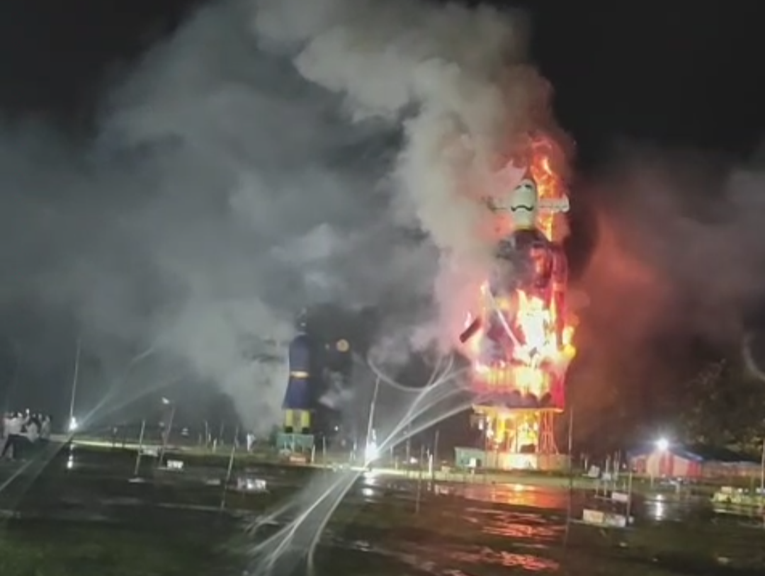 Ravan dahan: शहर के पीजी कॉलेज मैदान में 85 फीट के रावण के पुतले का किया गया दहन, बारिश ने लोगों का मजा किया किरकिरा,....