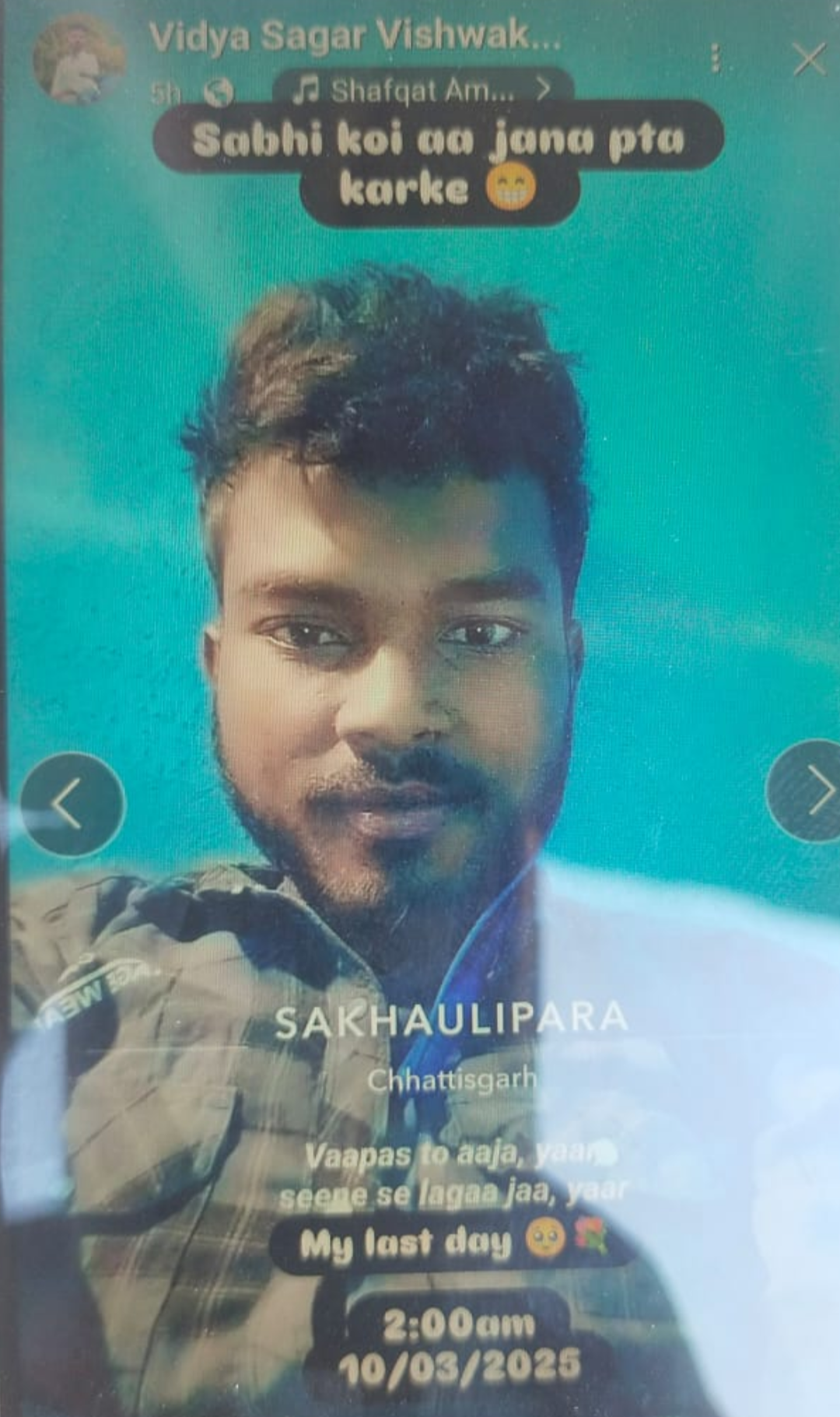 युवक ने लिखा- “My Last Day, सब कोई पता कर के आ जाना, अब तो आ जा यार-सीने से लगा जा यार।” वहीं मोबाइल पर Sad Song बजता हुआ मिला। ऐसे में यह मामला प्रेम प्रसंग से जुड़ा प्रतीत हो रहा है।
