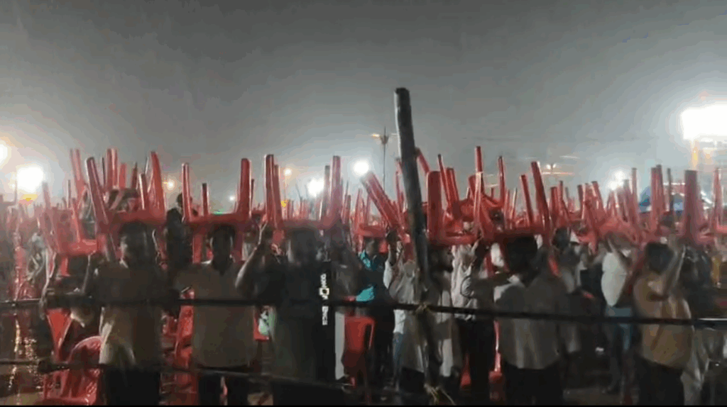 इधर बारिश से बचने लोग इधर उधर भागने लगे। कई लोगों ने सिर पर कुर्सियां रख लीं ताकि बारिश से बच सकें।
