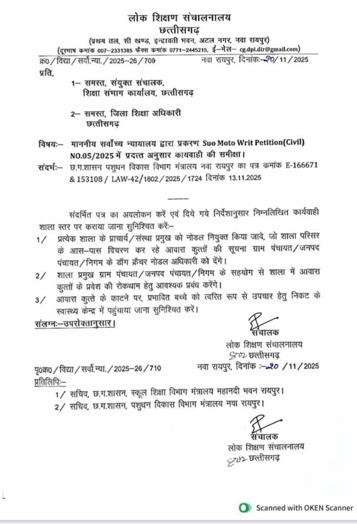 रायपुर। Teachers will monitor stray dogs: प्रदेश में आवारा कुत्तों के बढ़ते खतरे को देखते हुए छत्तीसगढ़ लोक शिक्षण संचालनालय ने बड़ा कदम उठाया है। अब स्कूलों के संस्था प्रमुखों को आवारा कुत्तों की निगरानी और उनसे संबंधित जानकारी देने के लिए नोडल अधिकारी नियुक्त किया गया है। सभी DEO को इस संबंध में आदेश जारी कर दिया गया है।